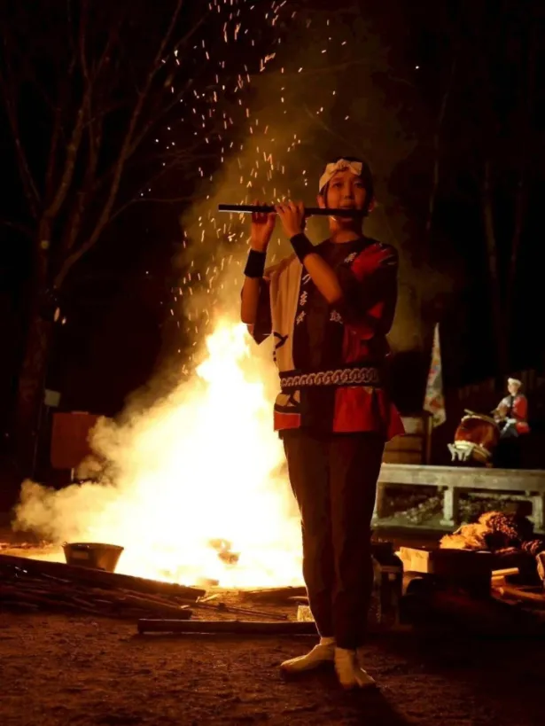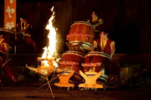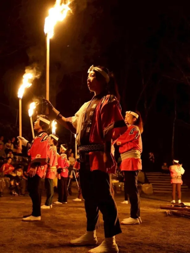 今回は中央の大きな炎だけでなく、篝火、松明といった炎も駆使し、約160名の観客を魅了しました。
