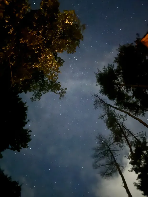 夜になると木々の間から星を眺めながら焚き火ができます。(信州小諸宿泊プランのみ)